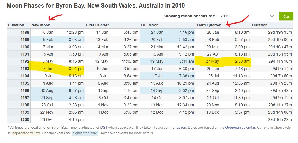Byron Bay moon 2019