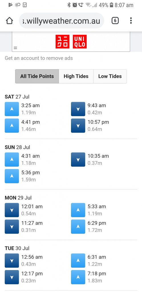 The high tide on 27th July was 1.46 metres at 4.41pm