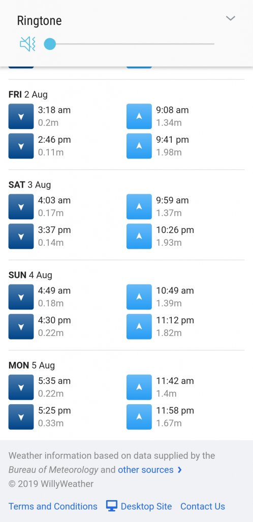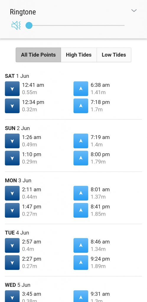 High tide on 1st June was 1.41 metres, low tide .04 metres.