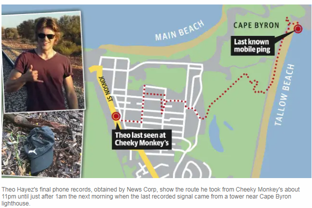 Clarkes is where the Cafe and the camping ground is on the beach. From main beach it runs past Clarkes to The Pass at the end. Road down into The Pass. Bushland in and around The Pass. I think the search was from Clarkes so it took in that bushland heading towards Wategoes and possibly ocean side of the road."That's interesting given that the first area of search after the ping was made public was in the bushland at Clarke's Beach. I'm wondering if the Cape tower only might serve that."