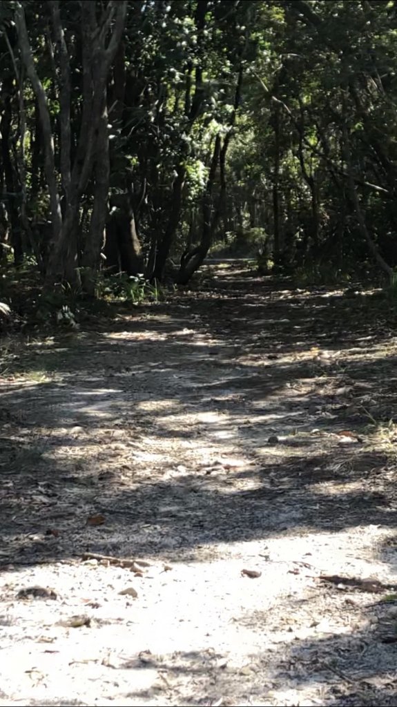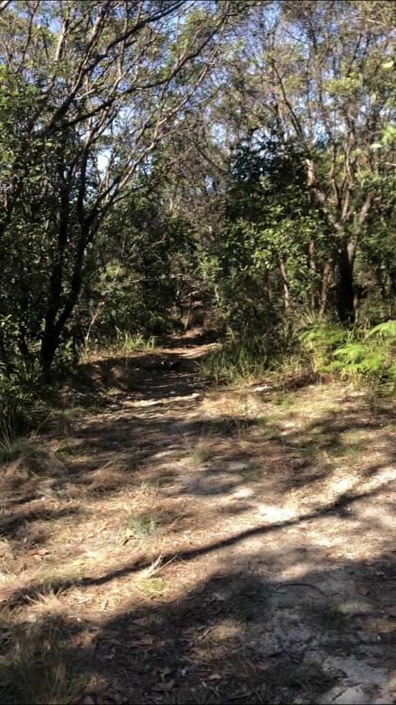 It took about 10 mins to come to where it looks like the end of the fire trail from Milne St. Where the trail looks like it ends on google maps satellite is kinda like a cross junction, on the left there is a path that actually leads too Tallow Beach Rd. I could see the cars and people walking past, it’s probably about 70-100m out to the road, and it’s big enough to fit a vehicle through out onto Tallow Beach Rd and there is a chain between two posts which is locked off the road (makes sense being a fire trail a vehicle has access from Milne street and Tallow Beach Rd entry).