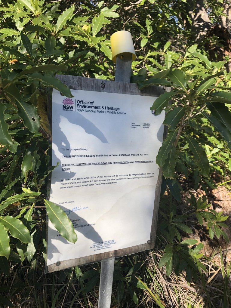 Now walking down this path about 100 meters in I came across a sign from 2018 that stated somebodies structure was to be removed at a certain date as it was illegal, and there was nothing apart from the sign that would alert of a structure being there at anytime, obviously someone’s permanent camp.