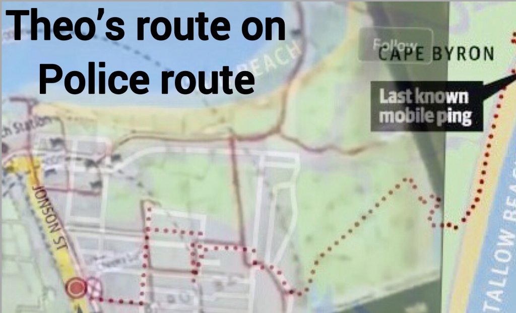 The dots in the fork formation at the end of his beach walk give the impression he was looking for a way out, either up through the bush or around the rocks. They however both stop short of making much progress. Or he tried the bush track and turned around to attempt the rocky side on the sea. It’s such a perplexing mystery and we need more info.