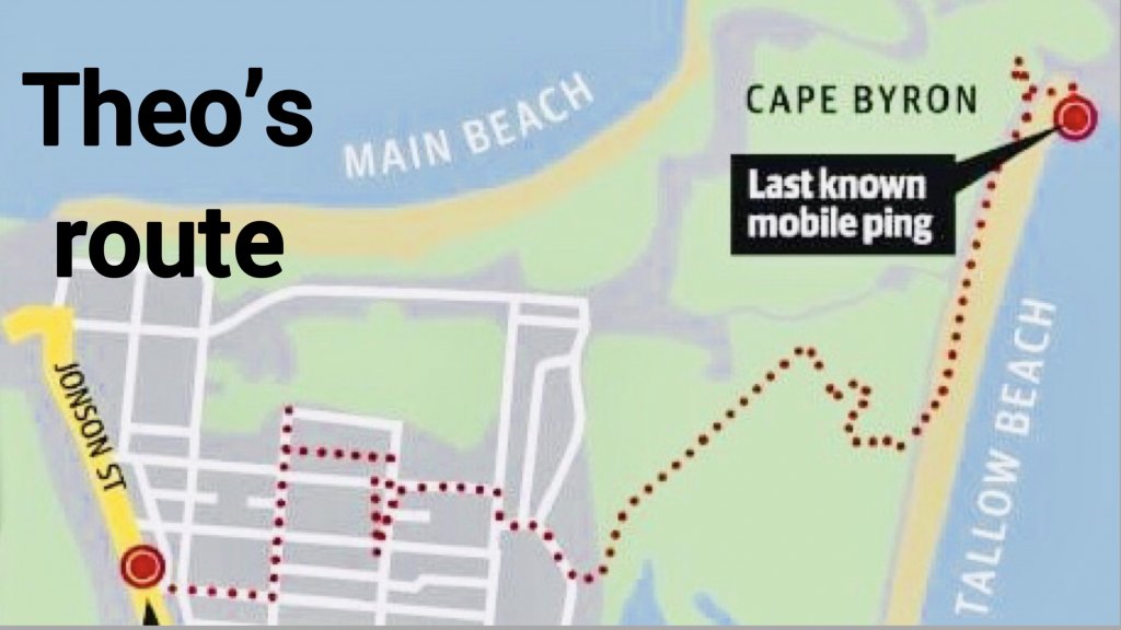 From here it looks like he went to the Stay in Byron Apartments and then continued on to the beach. Did he meet up with someone there and they walked to the beach together.