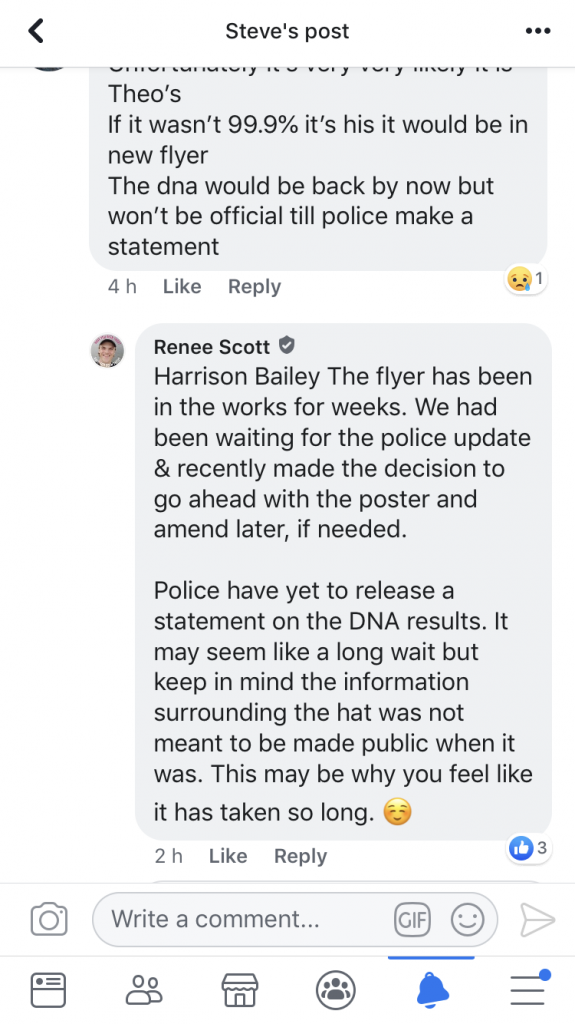 Hi all, as I am new to this I hope this isn’t against the rules and if it is I apologise. In reference to the LFTH fb groups new poster with all of the items of Theo’s to be looking out for (minus the hat?). Has anyone noticed the comments regarding people (professionals and PI’s as well) being closed/left out of the investigation and referencing pics of the hoodie being taken down? Is it just me, or does that sound awfully familiar to anyone?