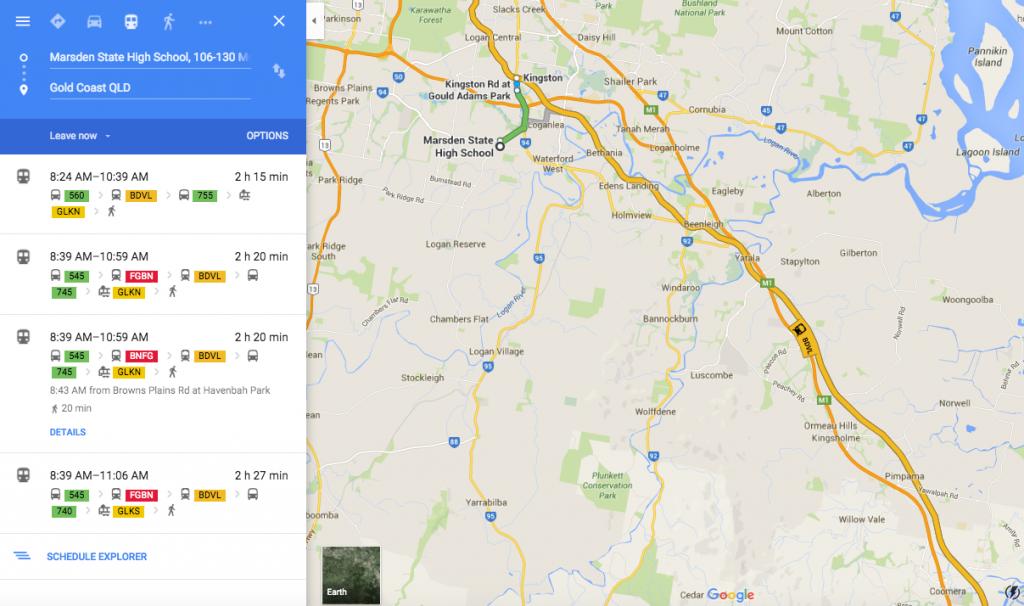 She was found along the bus route that leaves from her school and travels to Surfers Paradise and the Gold Coast .. https://www.google.com.au/maps/dir/...af3deaf70!2m2!1d153.4256987!2d-28.0172605!3e3