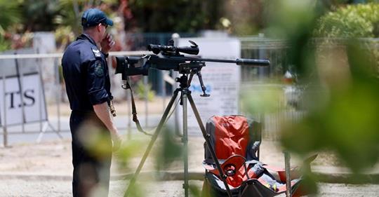 A sharpshooter with a loaded high-powered rifle is keeping watch on the banks of a Bungalow waterway while police divers search through the muck for evidence.