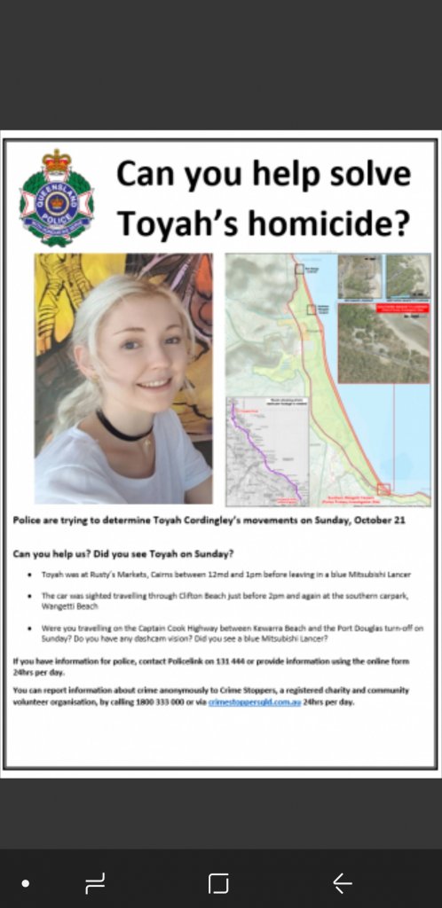 Australia - Toyah Cordingley, 24, body found on beach, 22 October 2018