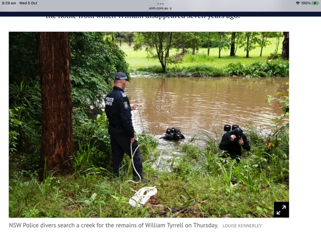 Or that Police were searching the Riding School Property itself … not just the creek area by the road ????