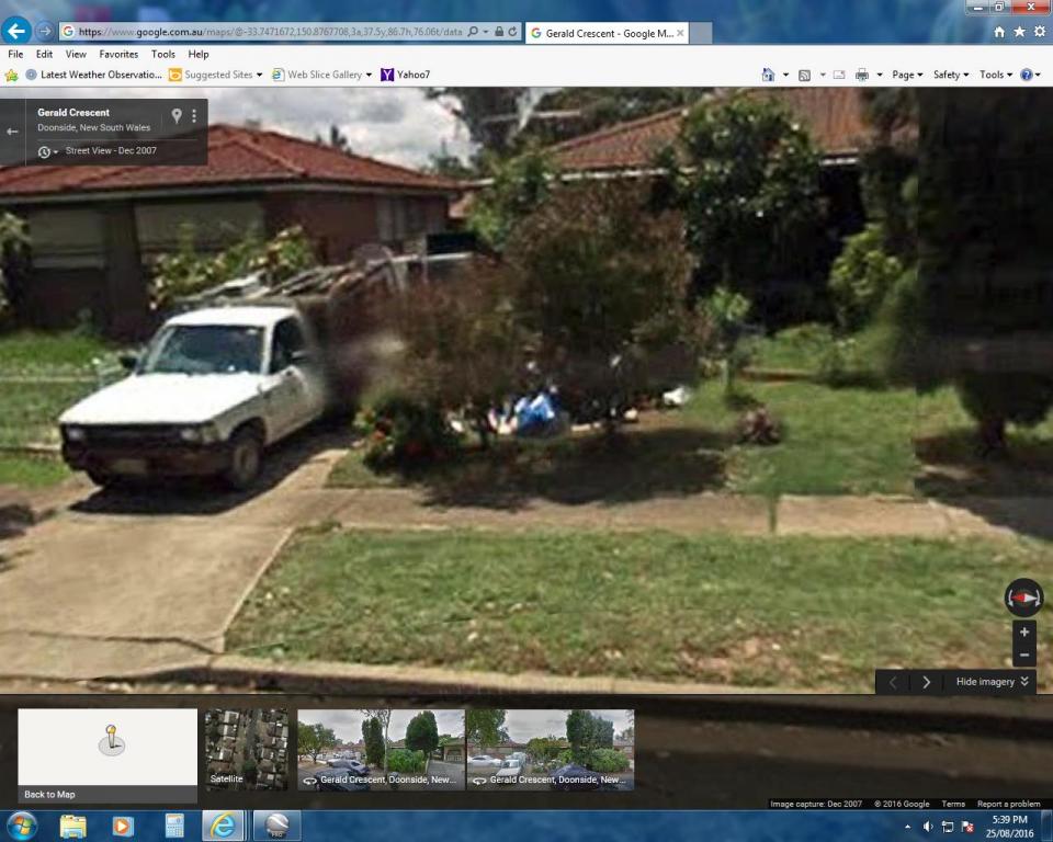 Google Maps Street View Historical Imagery of KL's house in Dec 2007. Note white Toyota Ute in driveway: