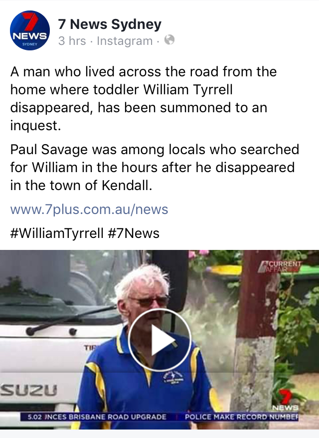 The second sighting was of a four-wheel-drive driving out of Benaroon Drive about 10.30am - when William vanished - and was later seen speeding down another Kendall street.