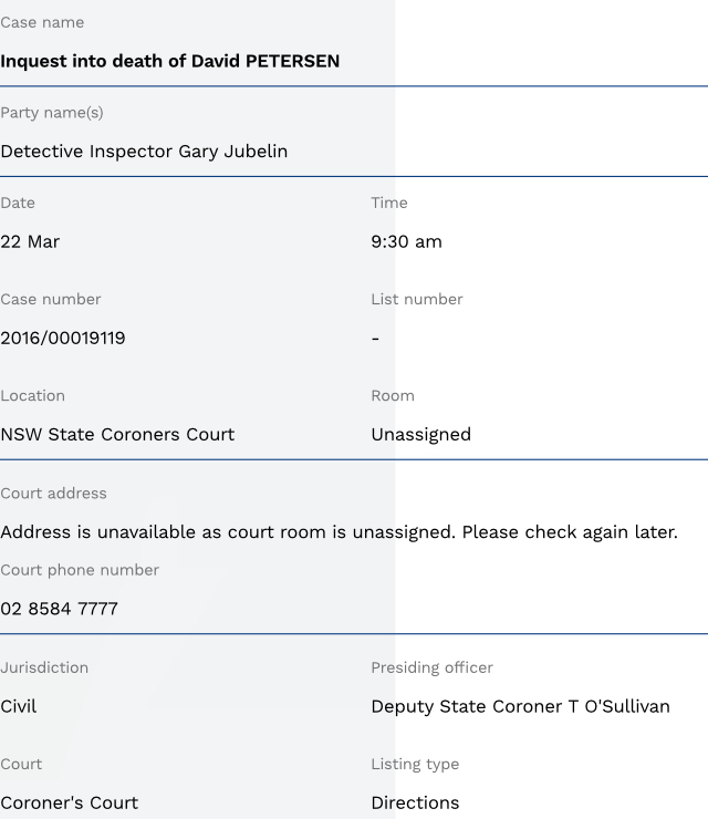 What I have noticed on the NSW Law Link site is all Coroners' Inquest case names include the wording ''Inquest into the death of''.