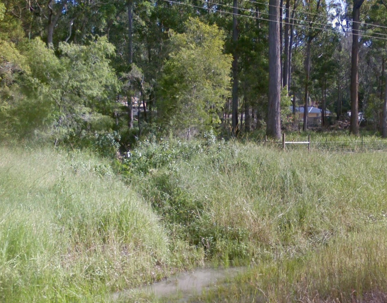 OK I'm looking at this again and that egress of water near the fence line can't be the creek as marked on the map; it's about 80m out. At least it's a confluence of "gully", wire fence and an end of Benaroon Drive.