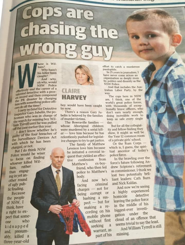 Funny you say that, tbl, the headline in the Daily Telegraph’s op-ed piece on the weekend was ‘Cops are chasing the wrong guy’.