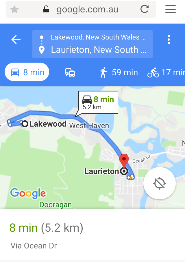 Thanks poss. The reason for making the distinction between the two centres is that AFAIK William’s FF was at Lakewood attending his GoToMeeting on the morning of September 12, 2014, whilst BS was said to be at his office, having coffee with MS and attending a school presentation at Laurieton, approximately five kilometres away, that very same morning.This is correct. Laurieton is the bigger of the two. It is a real retiree area as well as houses a few holiday accomodation as well as Dunbogan. Lakewood is similar to what I would describe a suburb with what would have been new housing estates many years ago and where you would find mainly owner occupied or long term rental properties aposed to holiday accomodation. I am talking from 10 years ago being in that area.