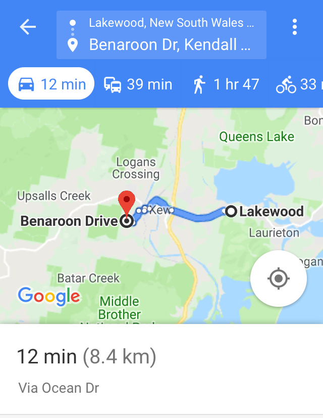 if someone was driving left out of Beneroon Drive that morning would MFC possibly passed in the opposite direction at all maybe..i have never been to the areaThanks poss. The reason for making the distinction between the two centres is that AFAIK William’s FF was at Lakewood attending his GoToMeeting on the morning of September 12, 2014, whilst BS was said to be at his office, having coffee with MS and attending a school presentation at Laurieton, approximately five kilometres away, that very same morning.