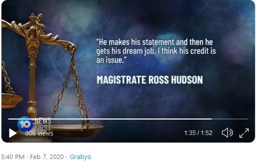Magistrate Hudson - He makes his statement and then gets his dream job. I think his credit is an issue.