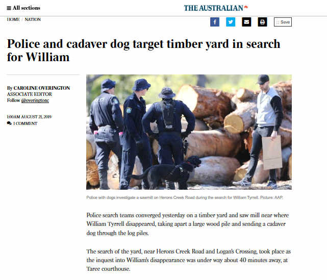 A convicted paedophile, who has been named as a person of interest in the three-year-old’s disappearance, was living in a caravan on the sawmill property, on Herons Creek Rd, when William disappeared from his foster grandmother’s home in September 2014.