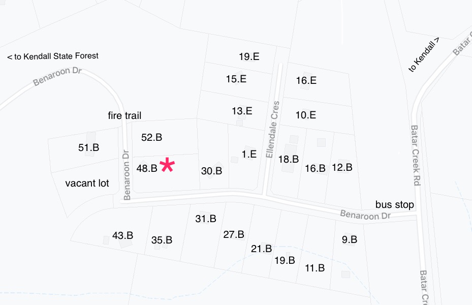 8.50: Mr 43.B walks home on Benaroon Drive from Batar Creek Road (2)