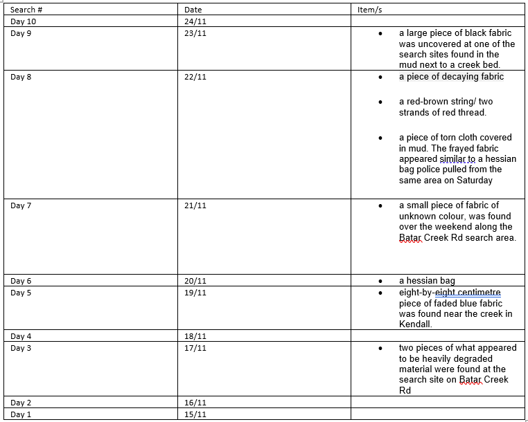 No, but I’m interested to know if you took notes of the FFC’s timeline she gave at the inquest. From the moment she discovered William missing to the 000 call is of particular interest.