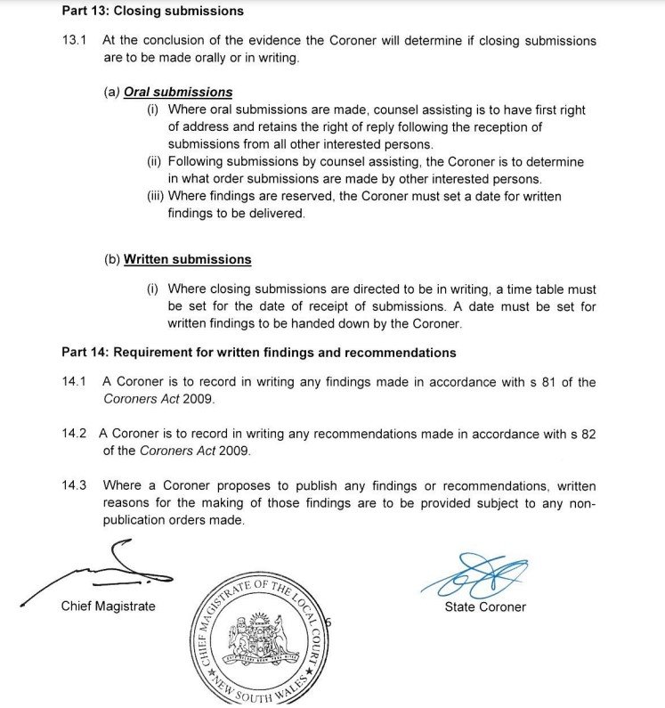 Sounds as if she has advised the lawyers to submit their closing submissions then she is going to produce her Coronial Report.