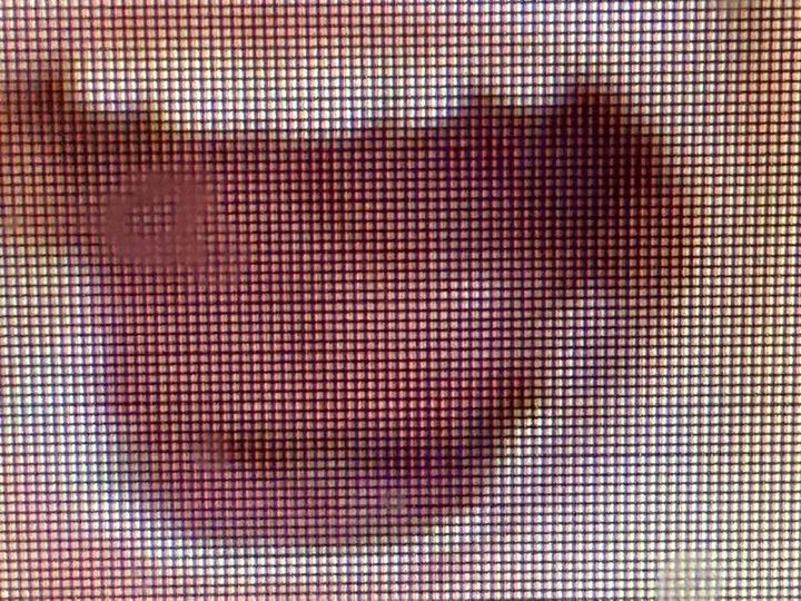 Your pic shows more of a light in that area of Ws mouth because it is a pic of a pic and not a pic of the original. whereas the pic I posted being closest to the original shows the outline of the object which looks squarish to me and there is no flash no obscuring light only the outline of what appears to be a dice big enough to change the position of Ws mouth
