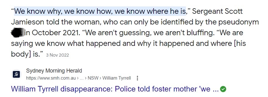At the end of nine years, Police are admitting, they, (like the rest of us) have no proof of what happened to William the day he went missing …