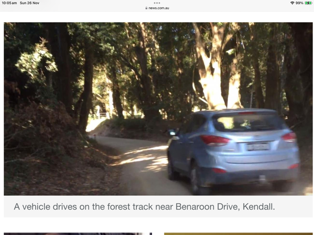 A NSW Police source said officers believe an object may have been thrown from the vehicle as it was driven along Batar Road at Kendall. That area is the middle of a massive forensic police search.”