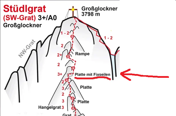 Here is a explanation of what is needed for climbing the Studlgrat route: Stüdlgrat