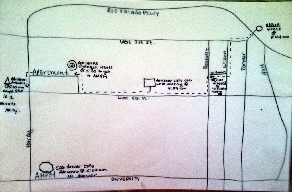 who said she changed into diff clothing? they let her leave house after accident, no car? 4-5am? she didn't say to anyone she was calling cab, heading to ampm? why not, just call cab at home/apt?
