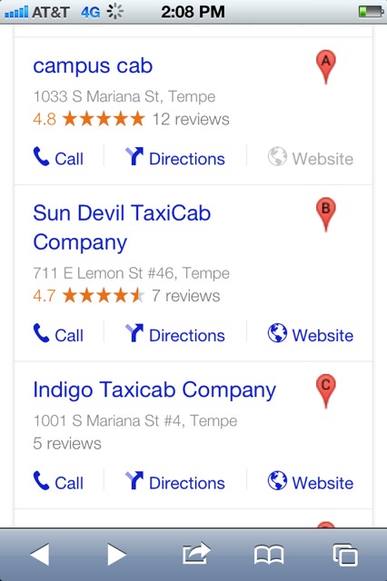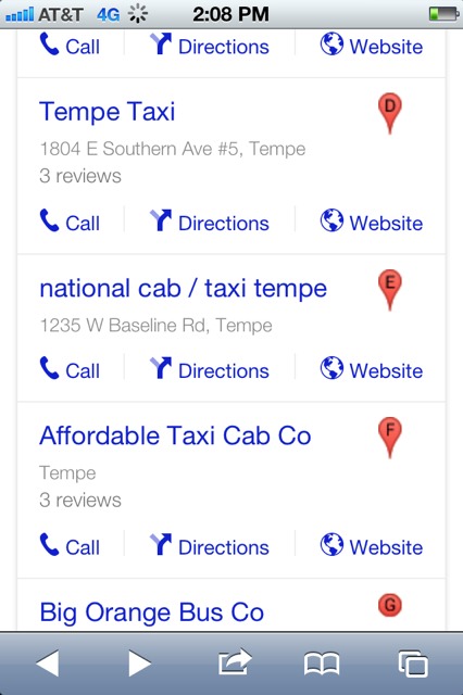 The top listing was an ad....Discount Cab Scottsdale, The website was www.scottsdalecabguy.com/service.php