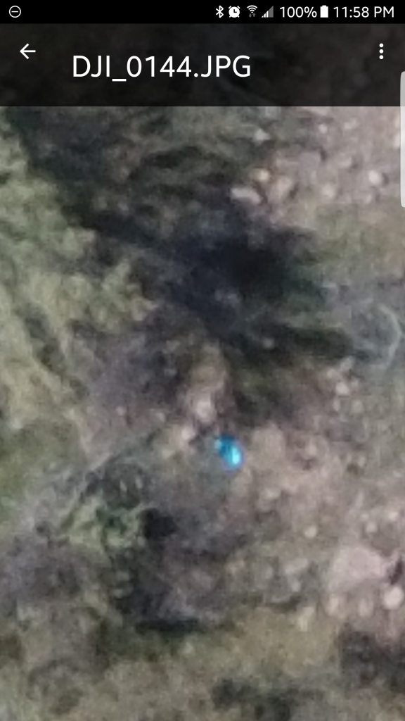 There appears to be a small, shiny, man-made object in some of the photos. It appears to be metallic and aqua in color. I think you can see it on 108 & 111 (will double check the numbers). Maybe a mylar balloon that floated in and caught on the rocks? It's kind of in a natural drain on the top of a ridge leading to a drop-off.
