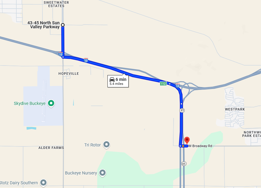 If you look at the times between the first 2 directions, 5 minutes, you'll see that when that first direction is given, Daniel's phone and jeep are heading south on SUN VALLEY PARKWAY at 8:49am. They then got on the I-10 east freeway and exited to MC85 where at 8:54pm the directions told them to turn left, they didn't and the directions kept telling them to turn left until they did at 8:58am. (We know this first GPS direction was from SUN VALLEY PARKWAY because there are NO east on ramps within 5 minutes of the 2nd GPS log besides the SVP on ramp.)