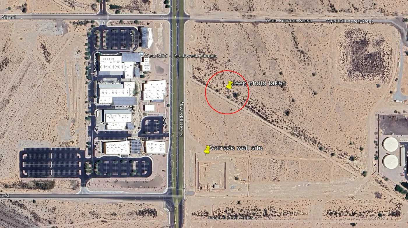 Here is a picture and a map showing how close that photo was taken to the Verrado(NARW3) well, it's not sitting on a road, there is a road directly behind it, its turned into the bushes. David called Detective Biffin as soon as he got this tip and was told it couldn't be Daniel's because the wheels didn't match- View attachment 661272