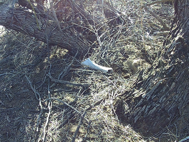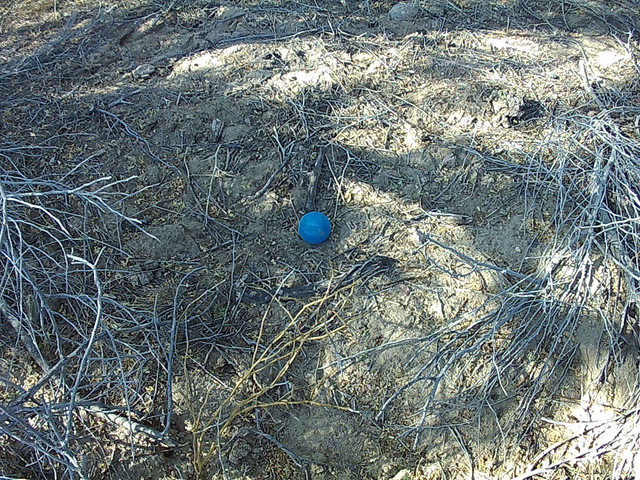 I got to search parts of the washes and Hassayampa river, tracks are easier printed since its mostly soft sand, all thru those areas i seen unlimited amounts of animal tracks, ranging from jackrabbits, cattle, to huge mtn lion. In most of the larger trees or bushes there are these "nesting" spots where large animal would most likely rest in the shade...a place i would take shelter on a hot sunny day , i tried looking at all the ones i could, found lots of animal bones. While i was searching i came across this blue ball(racketball) that was right in the middle of this "nest" and looked to be placed there, just looked really odd where it was, between two bushes in the middle. I was recording while i was walking and seen this ball, while i walked up to it i was reminded of how cats and dogs like to play with balls and would sometimes leave them on there favorite pillow, bed or whatever they like to sleep on. On a closer look i was able to see shoe or boot print under or next to this ball. This made me wonder if there are people living nearby.