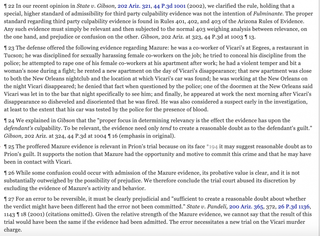 He always claimed innocence and in 2002 his conviction and death sentence was overturned. There was no murder weapon or strong physical evidence to link Prion to Vicari's brutal killing, only arms in a dumpster. Diana's family was back at square one. The killer still out there.