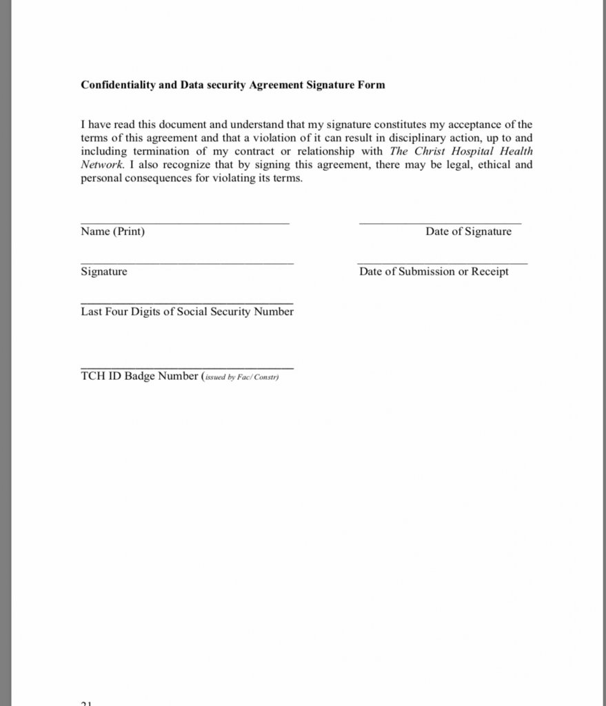 For example, I found a “Contractor Safety Manual,” prepared specifically “for Construction Workers performing work at” a healthcare facility. It includes a “Confidentiality and Data Security Agreement” that each worker is asked to read and sign.