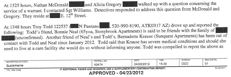 From what I can understand there was a pending situation,(x in pending) made by an Offc Ward 4/21 at 22:24(10:24pm), on page 1 of the 3 page report. Page 2 has the cds marked and Page 3 is 4/22, the next day at 3:45pm, two detectives went into the storage unit for the cds. Now who else, besides the Celis home was searched before 4/21 at 10:24pm that the storage unit could belong to? And is Offc Ward the one who wrote the report finding something about the storage unit and part of the Celis home search or another home?