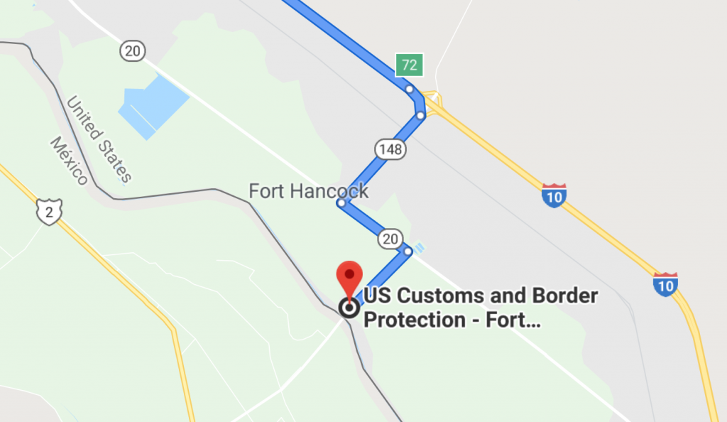 Yuma to Fort Hancock = 8h 33m according to google maps.
