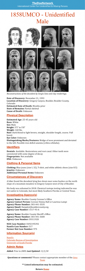 His NamUs profile has been modified a few times this month with new pictures and rule outs