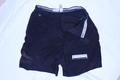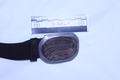 Levi brand blue denim jeans; dark shorts, LizGolf brand; black belt with brown wood buckle