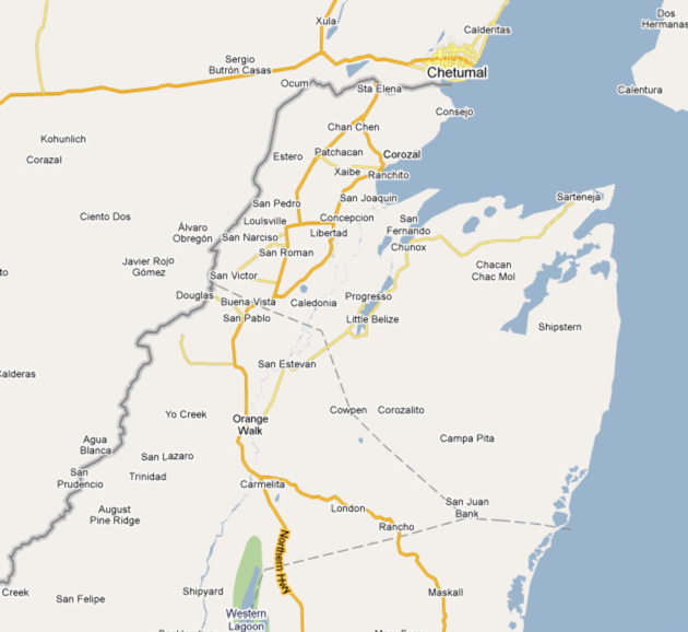 Now, can you tell me whereabouts on the Chan Chen Rd. they were found? The North or the South side of where the Northern Highway cuts across perpendicular? I'm guessing it's the south side. Also - if you were booking it North out of Corozal on the highway, the Chan Chen Rd. is pretty much the first "main" road, according to the maps, although it is still a dirt road, I think.