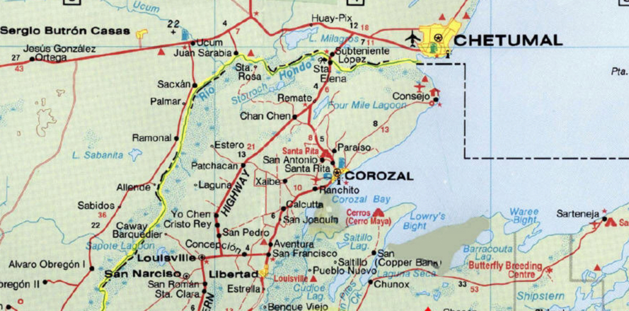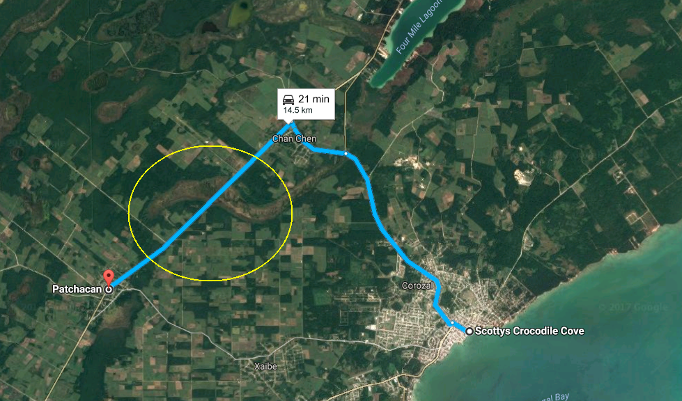 It does appear the Chan Chen Rd.runs on the north side of the Northern Highway as well, and since articles indicate they were found close to the Mexican Border and also outside of Chan Chen, I do wonder if they were placed on the far, northern end of that Chan Chen Rd.