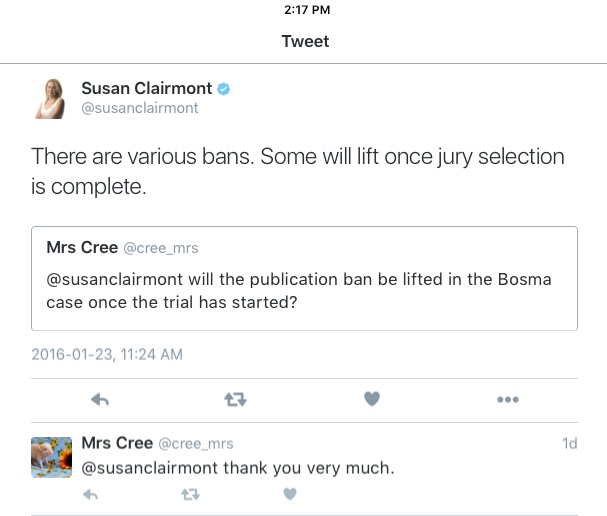 Last juror has been chosen. #TimBosma jury is now complete. Evidence starts Feb 1. @CHCHNews