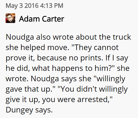 Adam Carter tweets or blog re Matt Hagerman’s testimony re May 11[SUP]th[/SUP] 2013