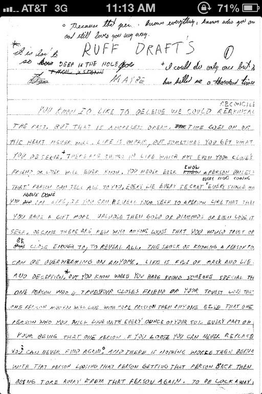 Another thing I just want to point out about the note, if you notice at the top where it says "Modern love Story" those 3 words are the closest hand writing to his journals. They have that cursive look to them like most of BSLs journals, while the rest of the letter appears to be print.