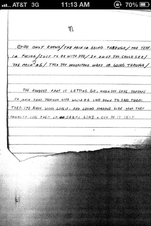 I actually wouldn't be surprised if BSL tried to write something like that. I haven't read his journal yet. But one of you stated he is grandiose with his words, another stated he's trying to write a song, it really doesn't sound to far off. And what freak at a bar writes some crap like that and gives it to a stranger?? Usually when someone says an "admirer" it's secret and they don't know who it is. I truly hope LE knows about this!! I wonder if Mickey was with her at the bar that night? They look so much the same he really might not have even been able to tell the difference between them! ...If of course it was even him. That is just a major coincidence, almost too big for me to believe it to be one. I'll take a look at the journals and his handwriting and then I'll have a better opinion.