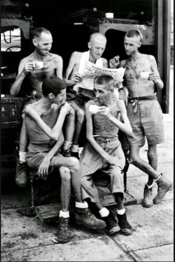 My grandfather was in a Japanese POW camp for three years during WWII, and the video of the boy reminds me of the pictures of the liberated POWs, such as this one---