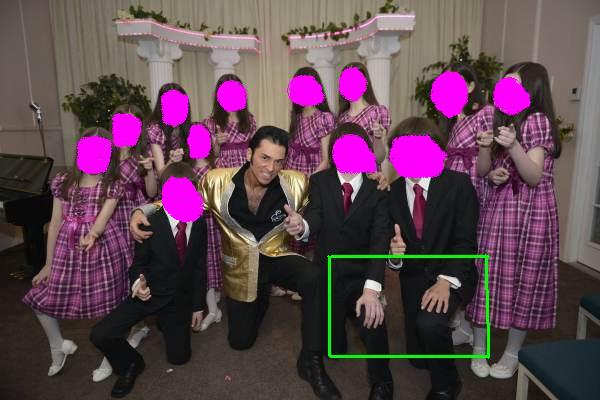 In this photo, I green boxed the hands of two of the survivors because of the very long overgrown fingernails on the one (found chained on arrest & rescue day) compared to the other (allowed to take some CC courses).