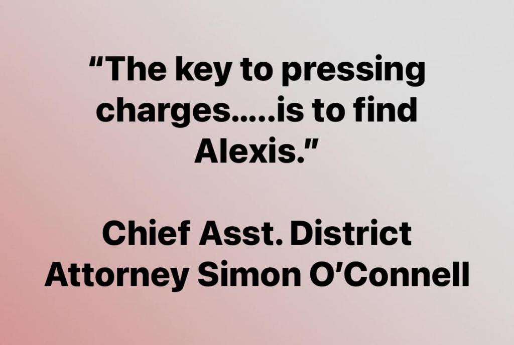 Gwyn Gabe's post today on the Help Find FB page. Hopefully the media will follow up on the meetings with the Contra Costa DA who failed to press charges against the mother of Alexis murderer. MOO